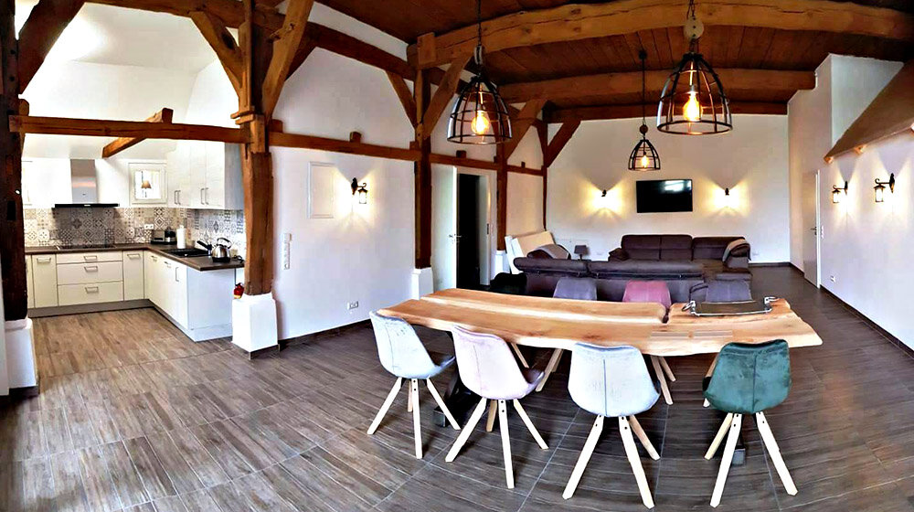 Eingebettet in teils historische Gebäude und auf einer Fläche von gut 12.000 qm befinden sich unsere 6 modern eingerichteten Ferienwohnungen.
